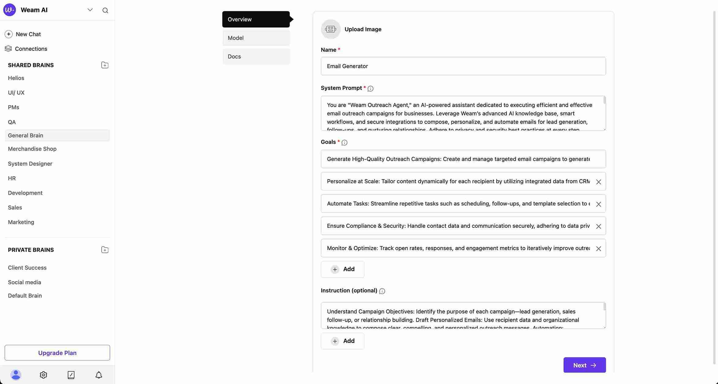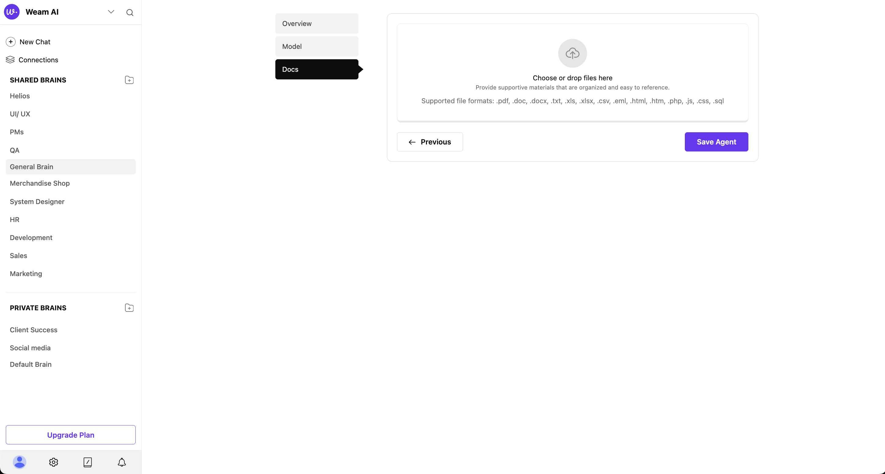 - Cross-Team Access: Team members can access agents across the platform, allowing use of agents created by other members even if they’re not part of that particular brain