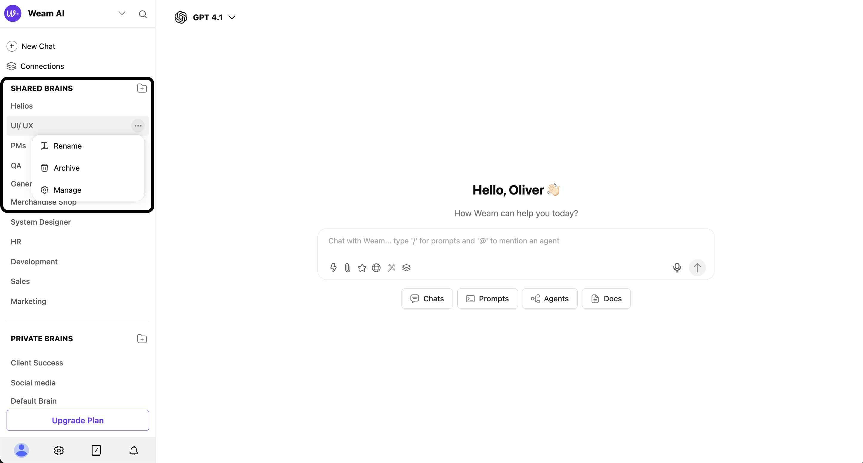 - Navigate to the “SHARED BRAINS” section in the sidebar