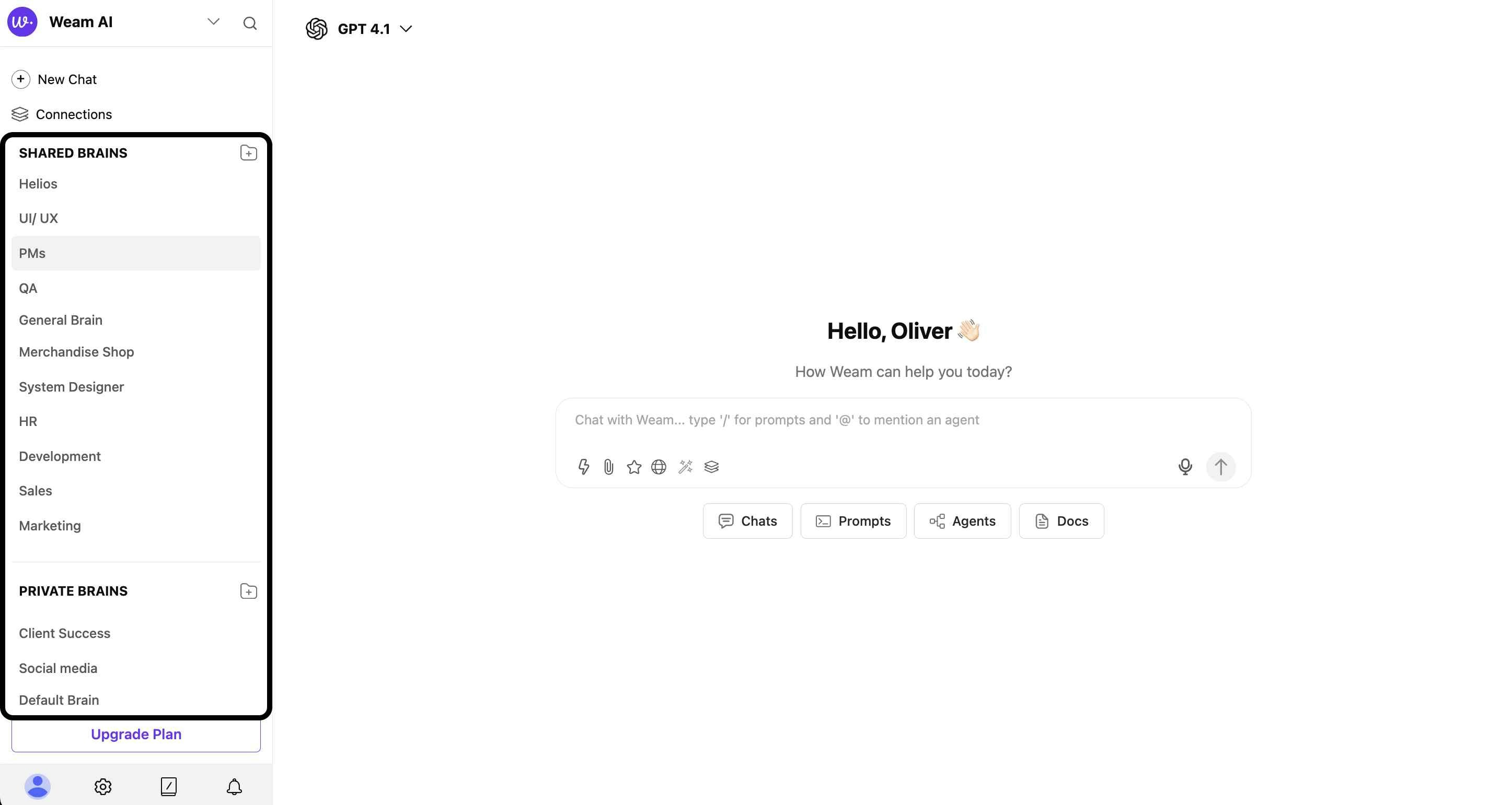 - Click “Add Brain” to create your private workspace